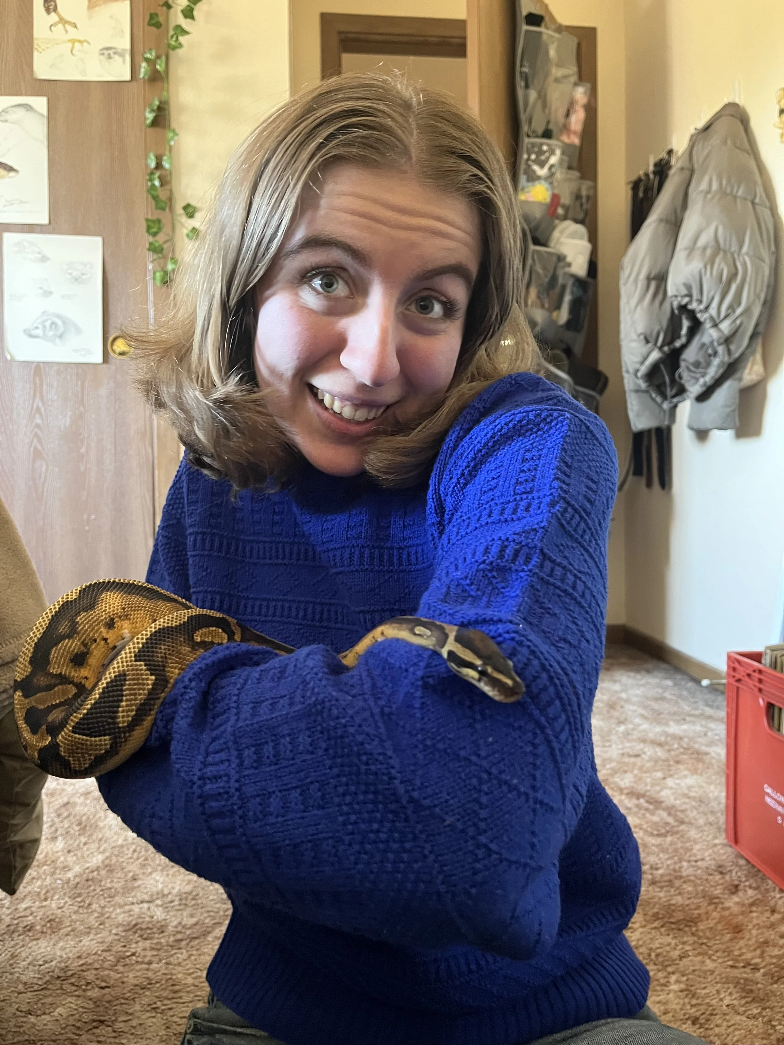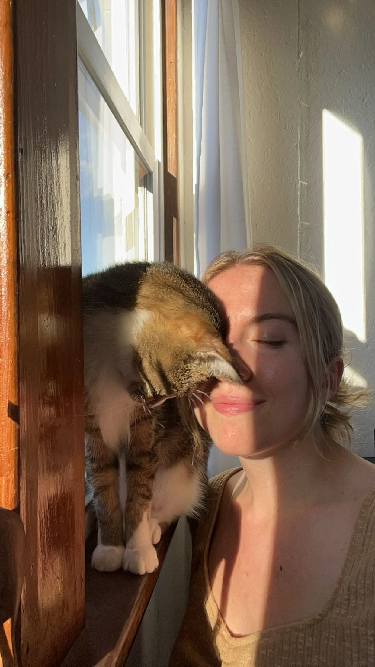 Beyond the theatre, I am a huge animal lover. There was a brief period as a kid when I thought I wanted to be a vet. Then I thought, “You have to tell people when their pets pass away? No thank you!” A lot of my hobbies are what my friends have lovingly dubbed “Grandma Activities” meaning I’m a big reader, I love to do jigsaw puzzles, and yes, I knit sweaters. My less grandma-y activities include playwriting, doing my hair, video games, and going to the gym.